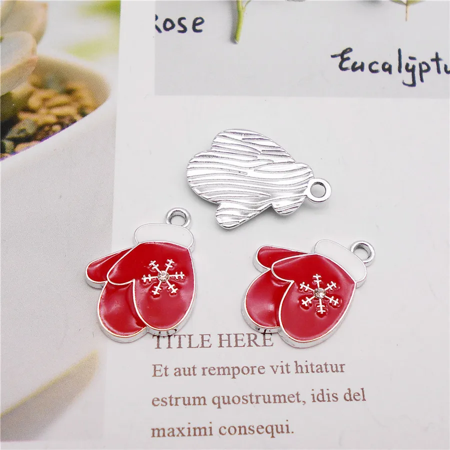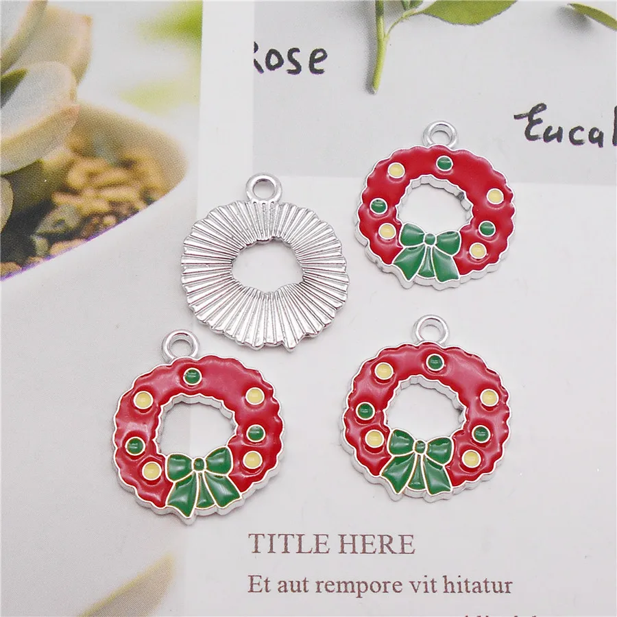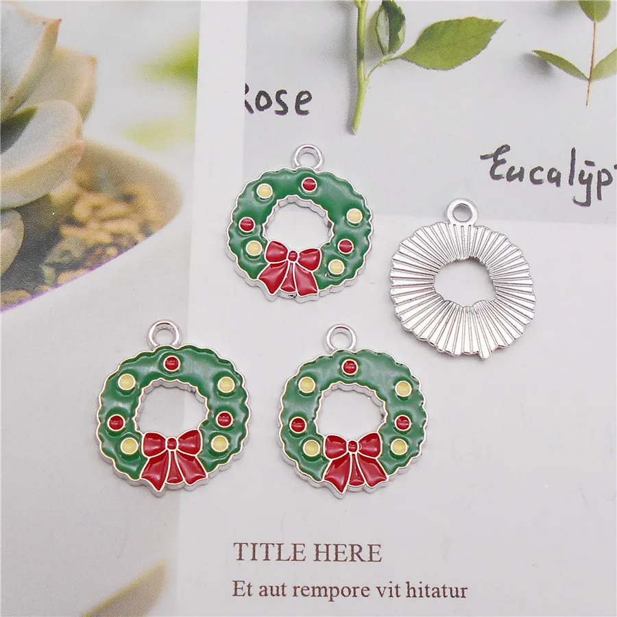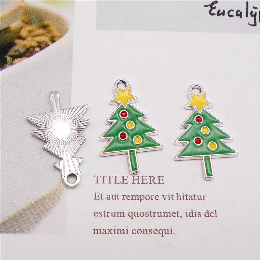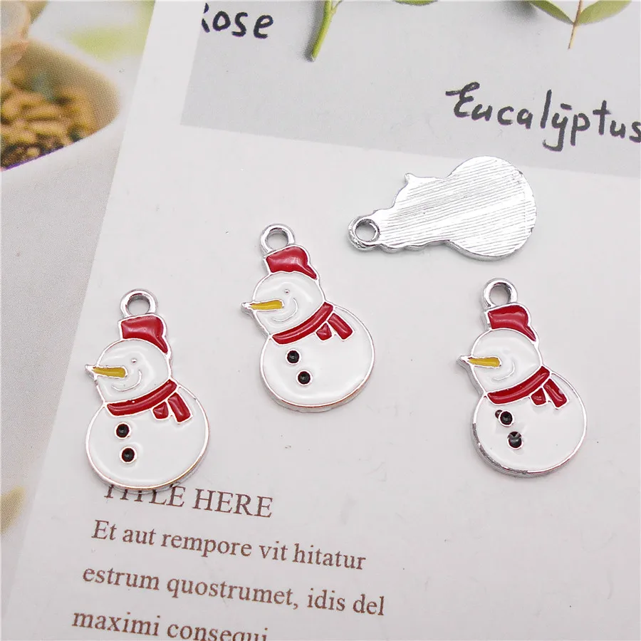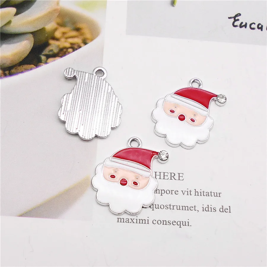 Enamel Christmas Charms Santa Tree Deer Bell Snowman Snowflake Wreath Pendant Bracelet Jewelry Making Accessory