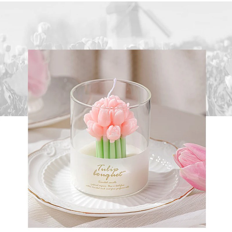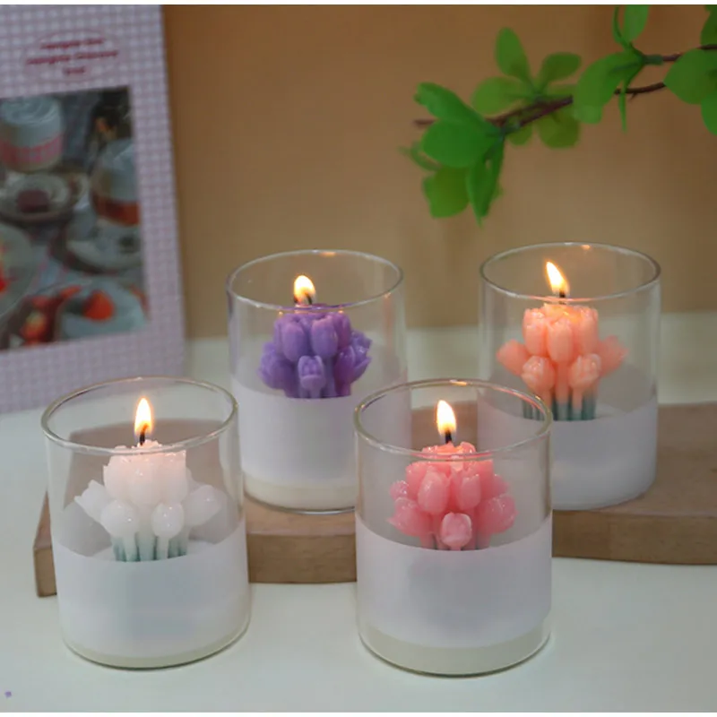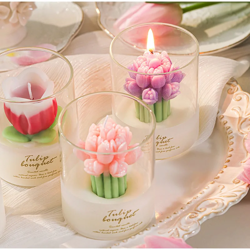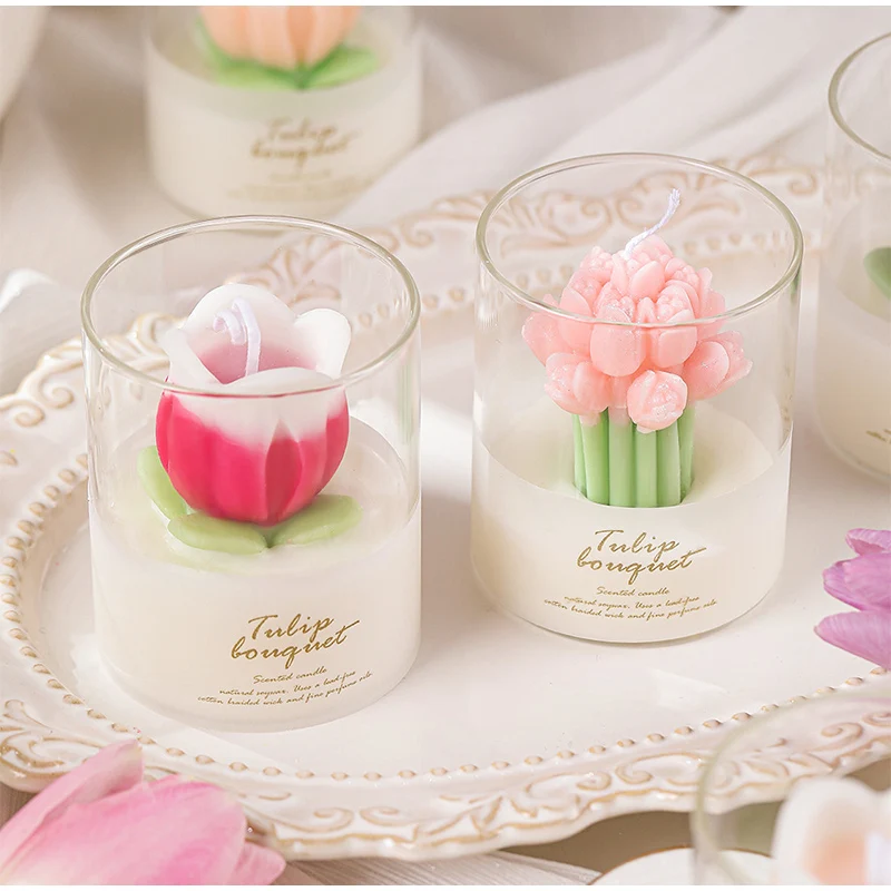 New Floral Scented Candles Ins Atmosphere Fragrance Gift Valentine's Day Gift Tulip Hand-held Flower Shaped Scented Candle Cup
