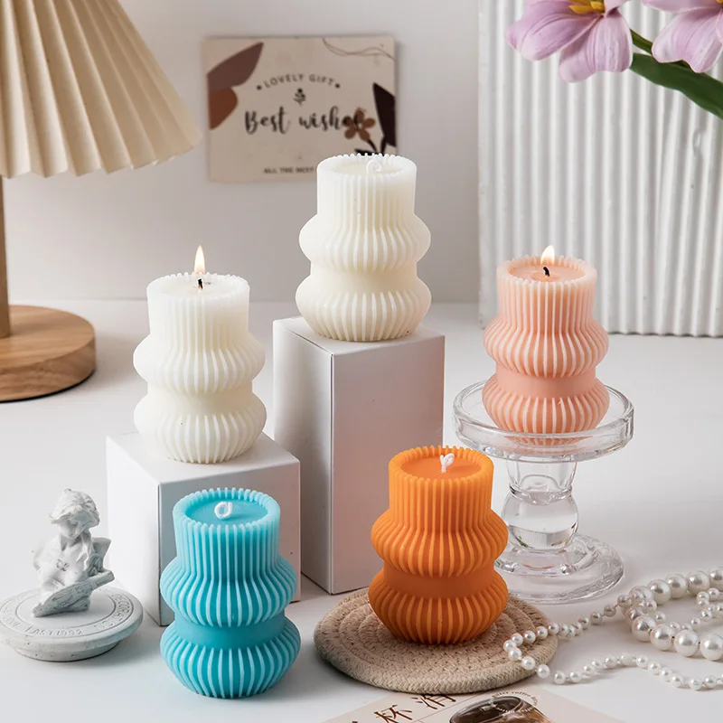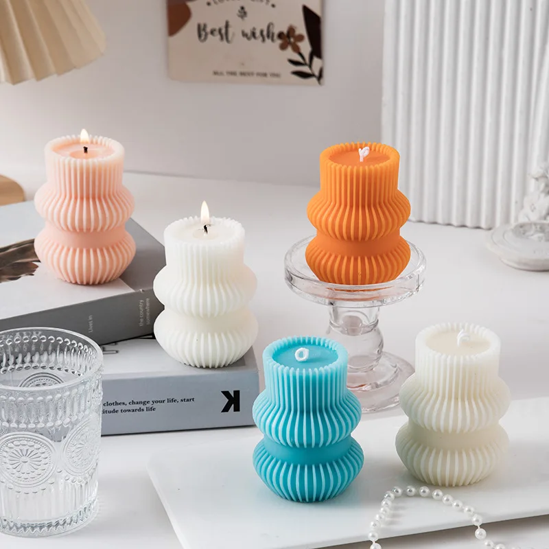 Featuring a modern, textured design in vibrant colors, this candle creates a cozy ambiance for any room.