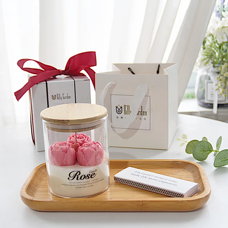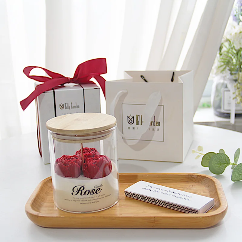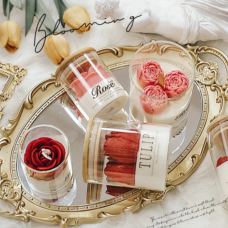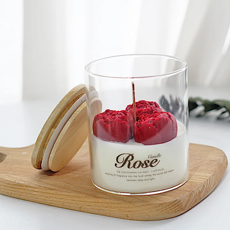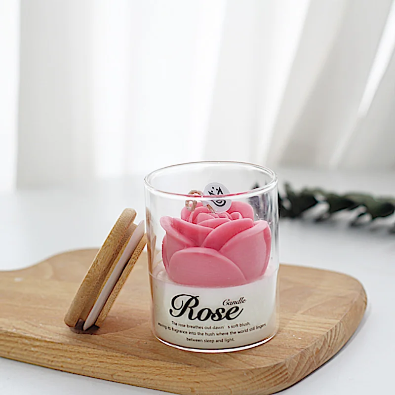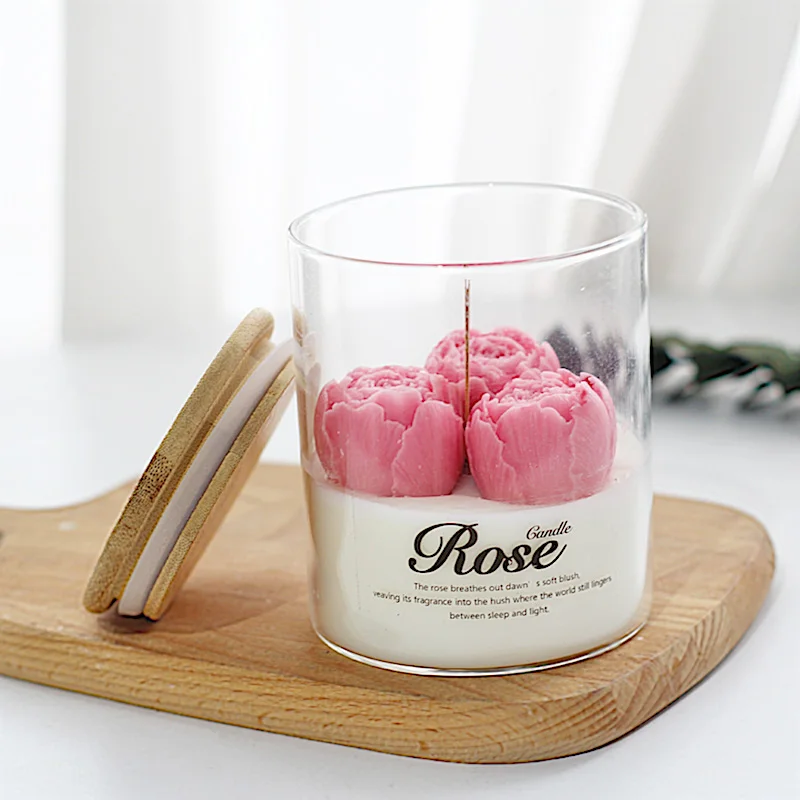 Create a romantic ambiance with this Rose Tulip Glass Candle, perfect for Valentine's Day or any special occasion.